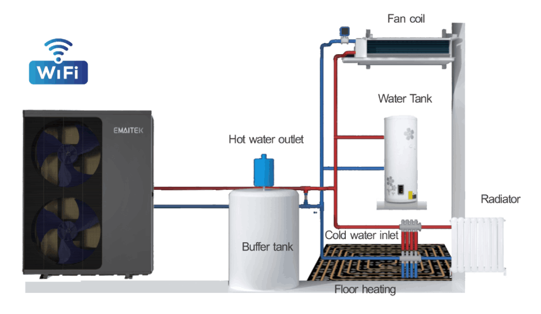 Zuverlässig, kompakt und umweltfreundlich – mit der innovativen Wärmepumpentechnik von EMAITEK lässt sich die Umweltwärme zum effizienten Heizen und Kühlen nutzen. Die hohe Wärme- und Kälteleistung verspricht Ihnen ein gleichbleibend komfortables und angenehmes Raumklima nicht nur im hochgedämmten Neubau gebaut nach modernen Standards, auch im Altbau kann sie wirtschaftlich sein, eventuell durch kleine begleitende bauliche Maßnahmen.